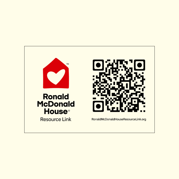 A square magnet featuring a QR code that leads to RonaldMcDonaldHouseResourceLink.org.
